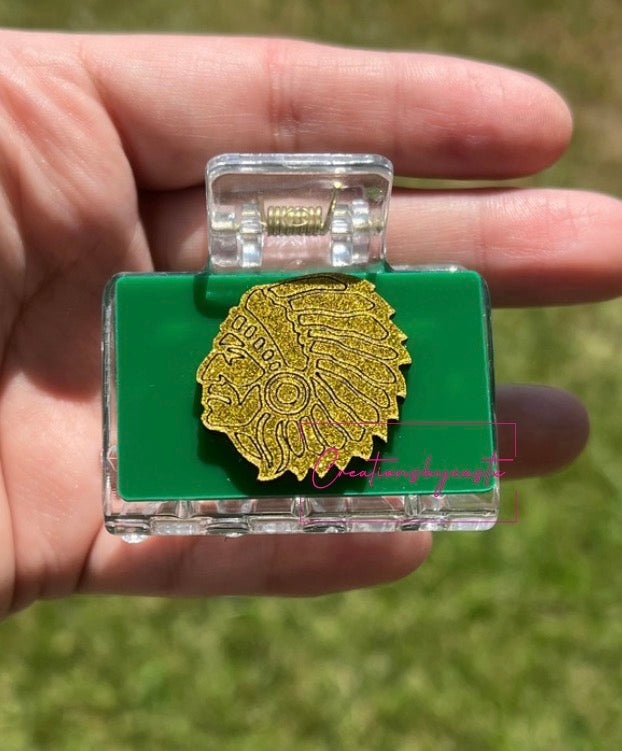 This listing is for one 2 inch custom claw clip. Please type the name, 2 color options (3rd/4th pictures) and 1 font (5th picture) in the notes at checkout! If you are wanting a mascot please email your mascot to creationsbycastx@gmail.com.