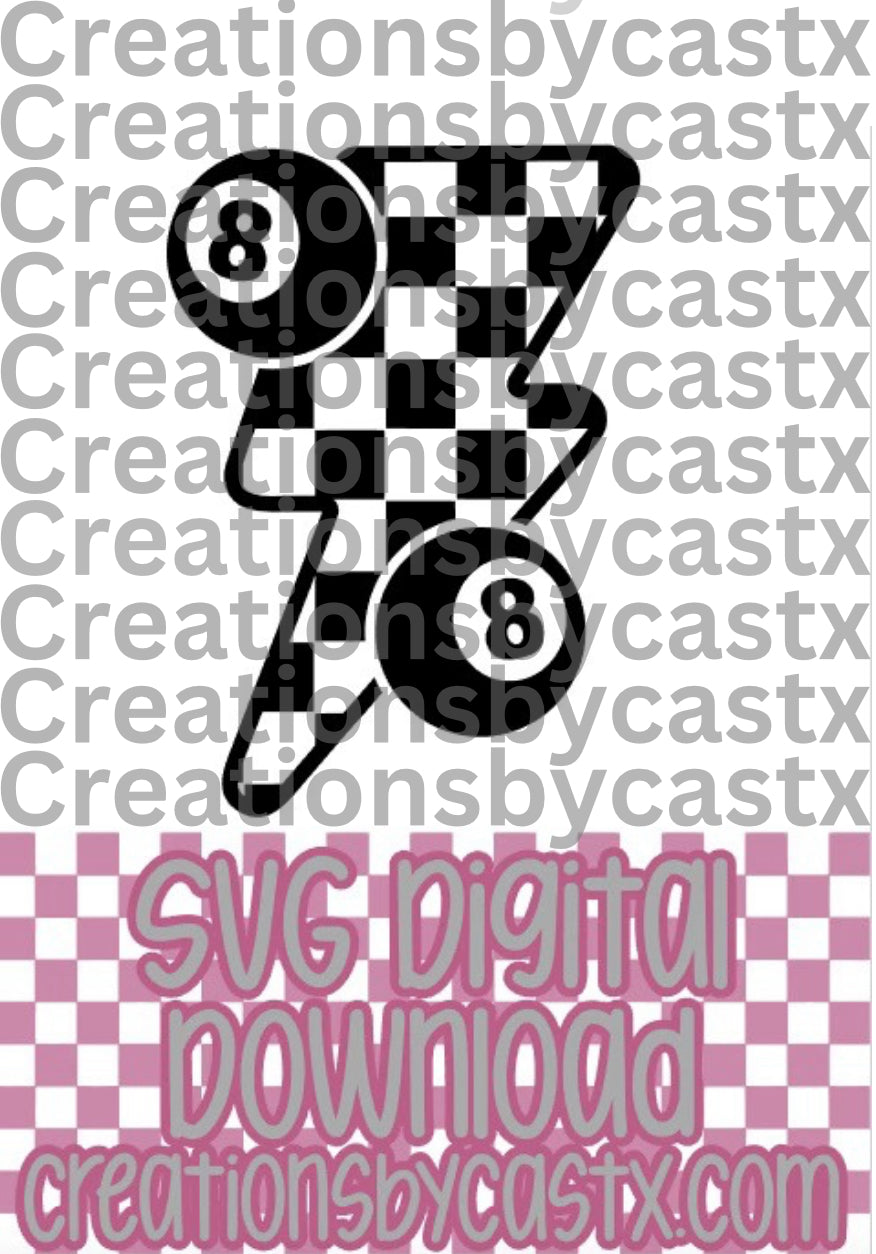 Checkered Bolt w 8 Balls SVG